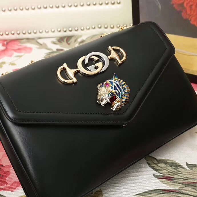 537241 Gucci 秋冬 Rajah系列 虎頭鉆石 牛皮 鏈條肩背包 黑色