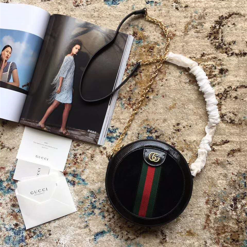 550618 Gucci女包 古馳圓餅包 古馳單肩包 Ophidia mini鏈條包 黑色
