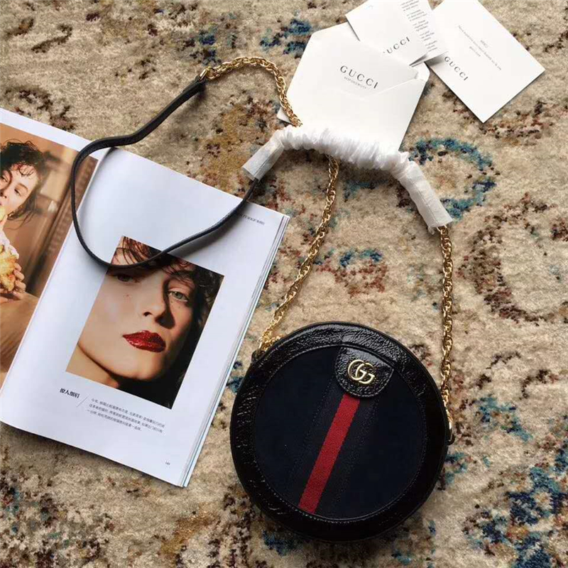 550618 Gucci女包 古馳圓餅包 古馳單肩包 Ophidia mini鏈條包 黑色