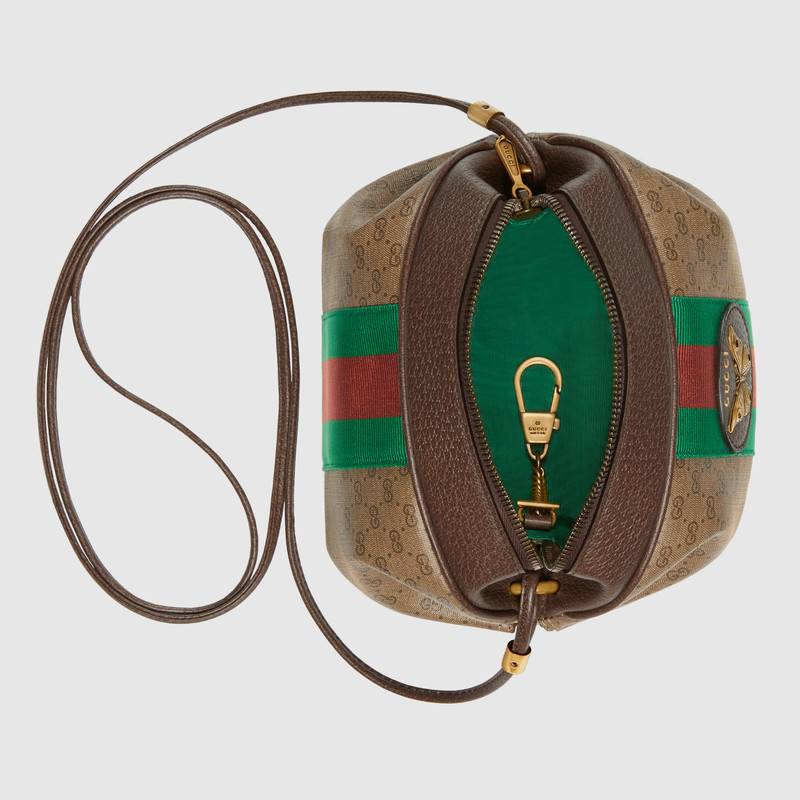 • 結構:云紋織物襯里,拉鏈開合,飾以金屬風蝴蝶鉚釘和Gucci標識,兩個卡片隔層,可拆卸鑰匙圈,皮革肩帶(65厘米高)