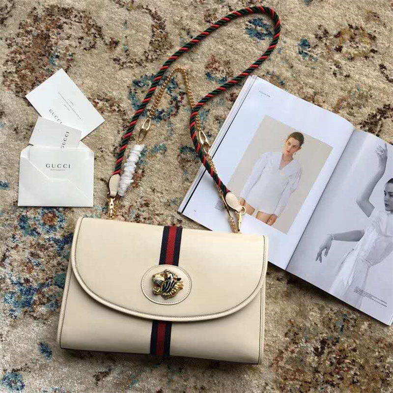 • 564697 Gucci女包 古馳單肩包 Gucci斜挎包 大號 古馳虎頭標 Rajah系列 白色