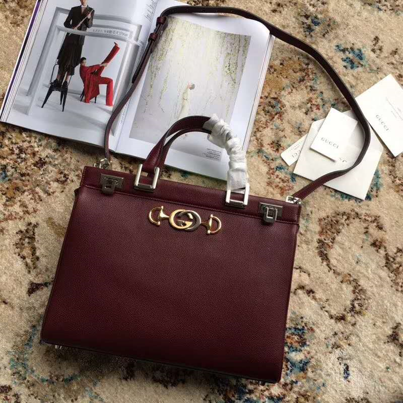 - 564714 Gucci女包 Zumi系列 互扣式G馬銜扣 顆粒面 中號 古馳手提包 棗紅