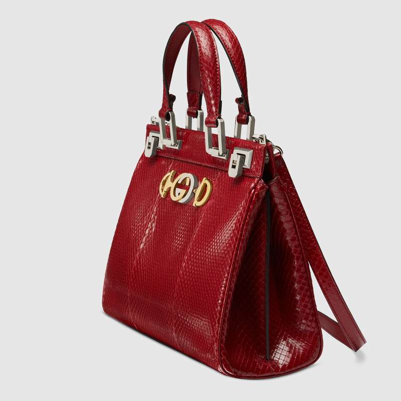 - 569712 LYQ0X 6438 Gucci Zumi系列蛇皮小號手提包 Gucci女包 紅色