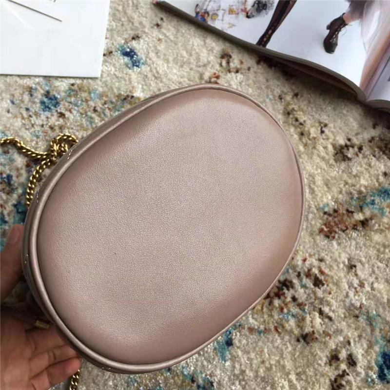 - 575163 Gucci GG Marmont系列迷你水桶包 Gucci圓筒包 灰粉色