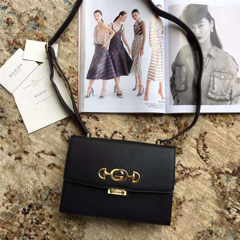 - 576388 Gucci女袋 Zumi系列 粒面皮革 互扣式G馬銜扣 小號 Gucci肩背包 黑色