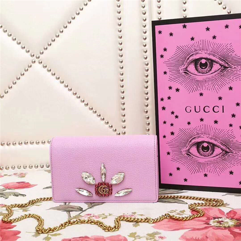 • 499782 GUCCI女包 古馳鏈條小包 水鉆包 帶化妝鏡 粉色