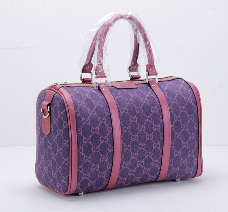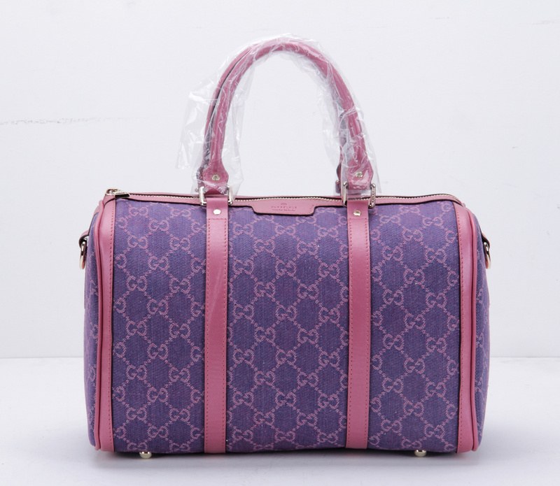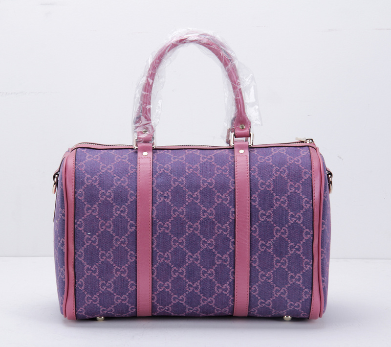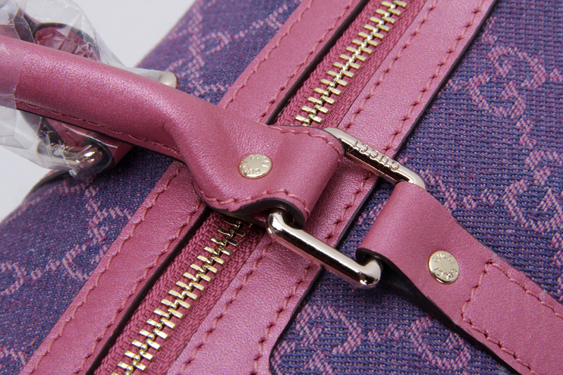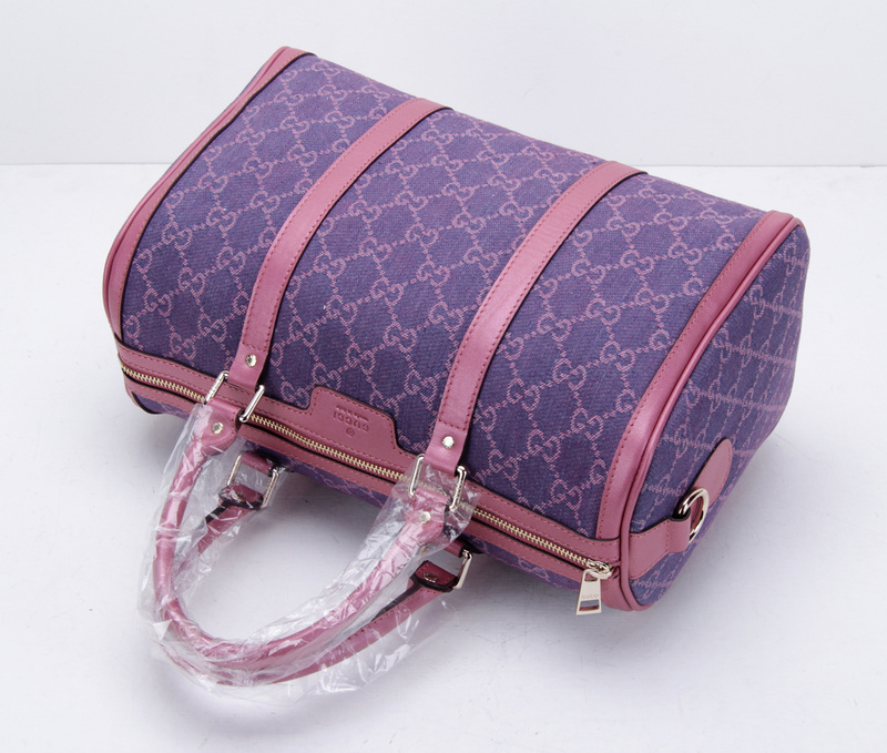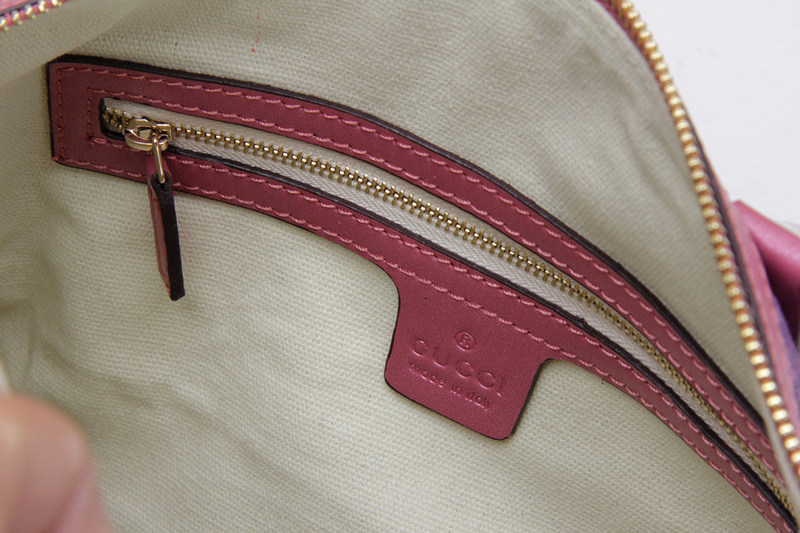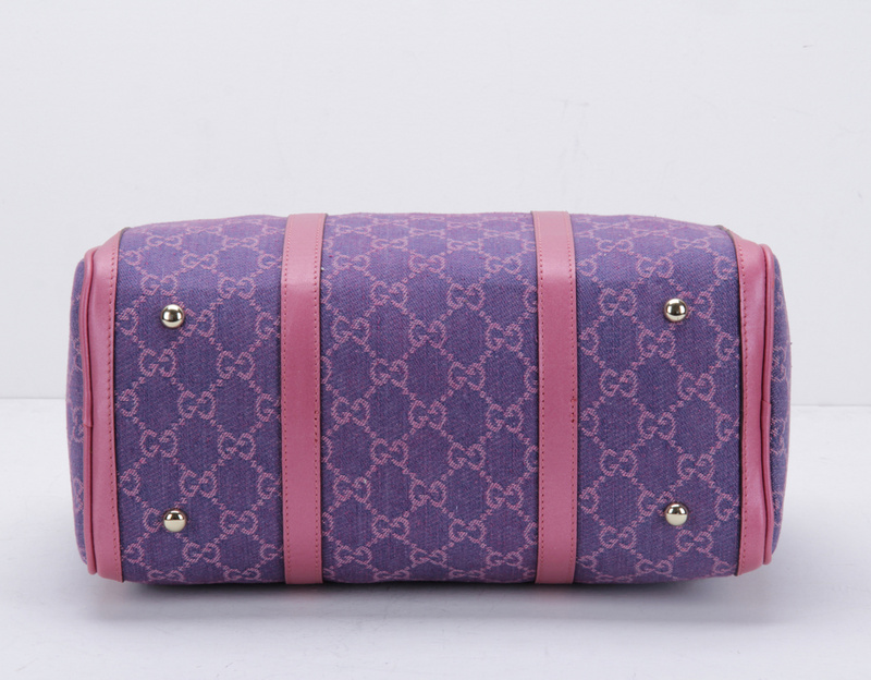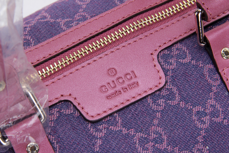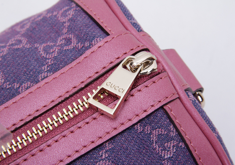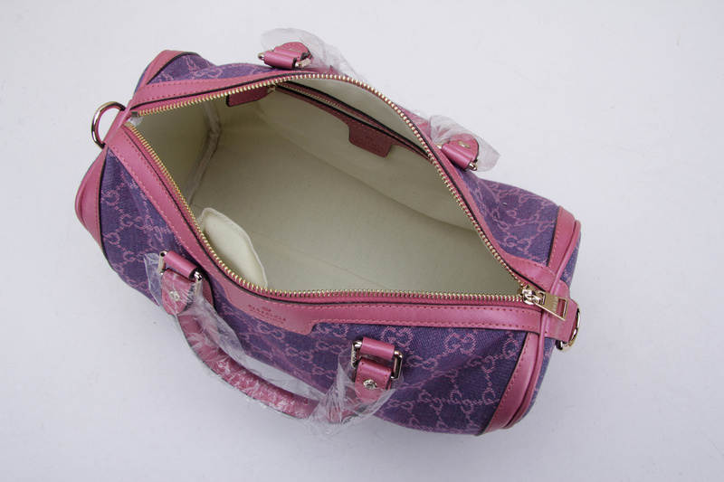 247205 Gucci 古馳 枕頭包 玫紅珠光皮配紫牛仔布