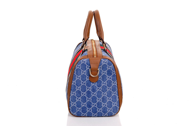 • 247205 Gucci 古奇2014新款 手腕包包 單肩斜跨包 藍色牛仔配棕色牛皮
