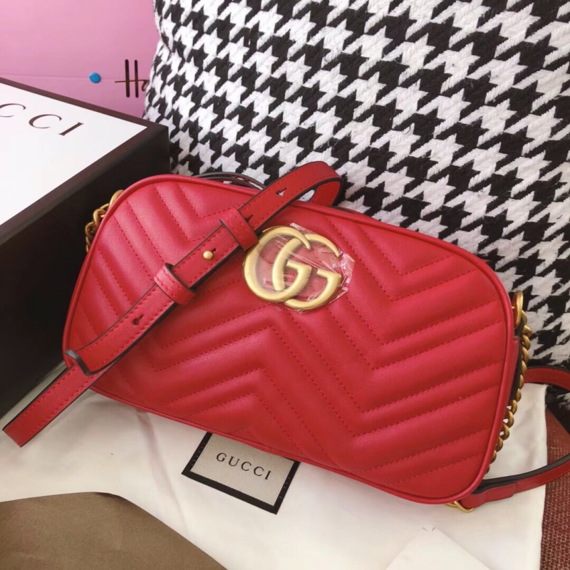 - 447632 Gucci GG Marmont系列小號(hào)絎縫肩背包 古馳相機(jī)包 紅色