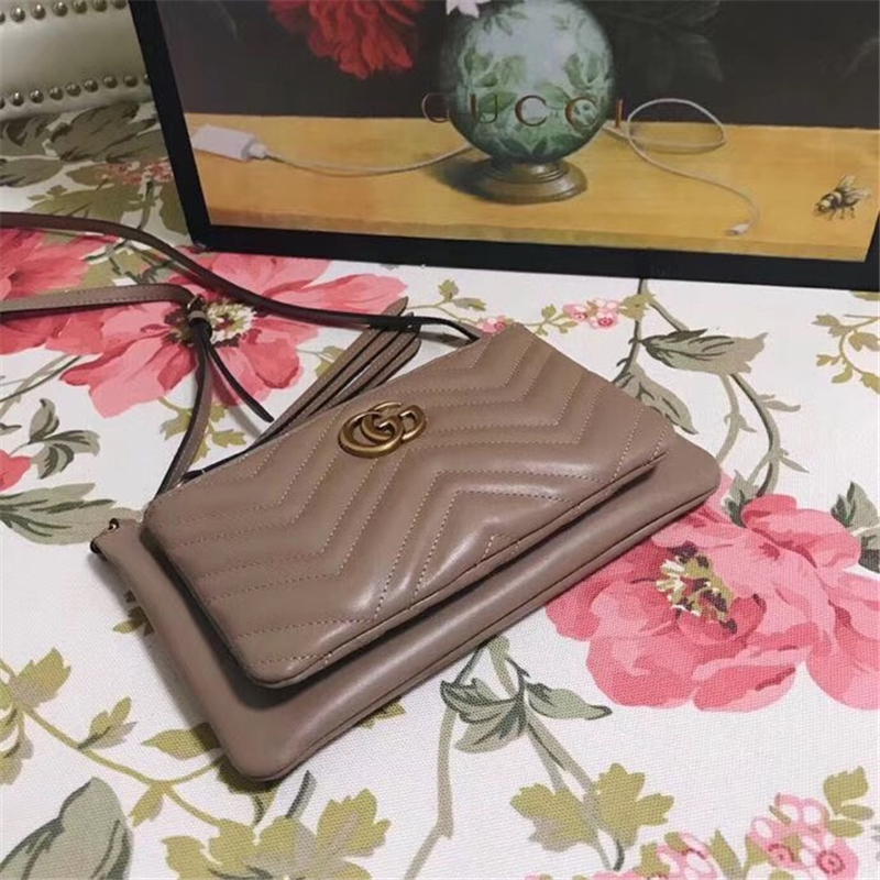 • 453878 GG Marmont系列 絎縫 折扣款 手拿斜挎 兩用包 棕色