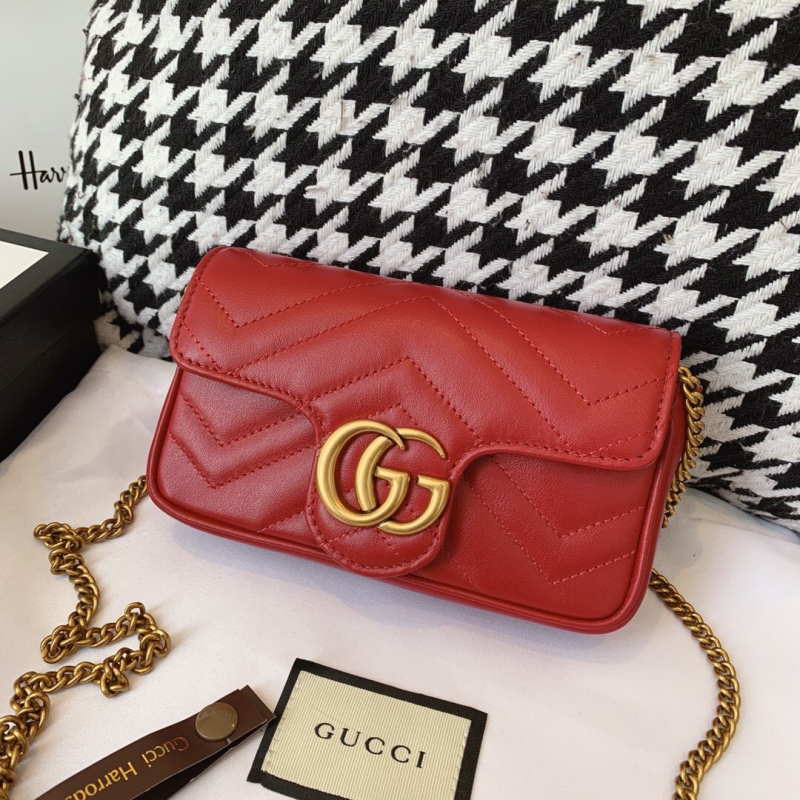 • 476433 Gucci GG Marmont系列絎縫皮革超迷你手袋 芙蓉紅