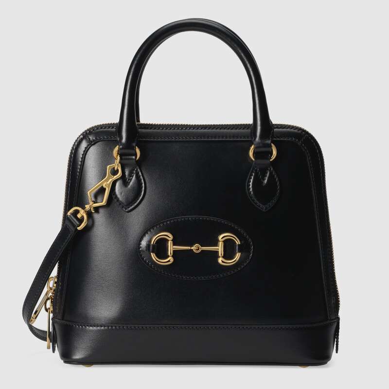- 621220 Gucci 馬銜扣1955系列小號手提包 Gucci牛皮貝殼包 黑色