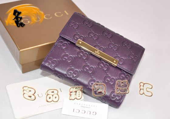 - 112664 GUCCI錢包 GUCCI最新款 全皮壓花短款錢包 GUCCI女士錢夾 深紫色