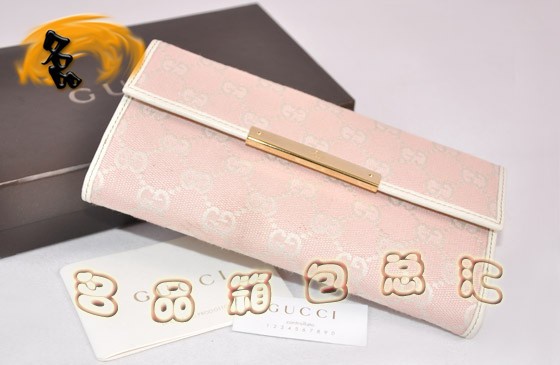 - 112715 GUCCI新款雙G花布女士錢夾 GUCCI錢包 GUCCI長款錢包 白配粉紅