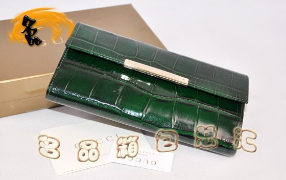 - 112715 GUCCI鱷魚紋錢包 牛皮錢包 古奇錢包 GUCCI長款錢包 綠色