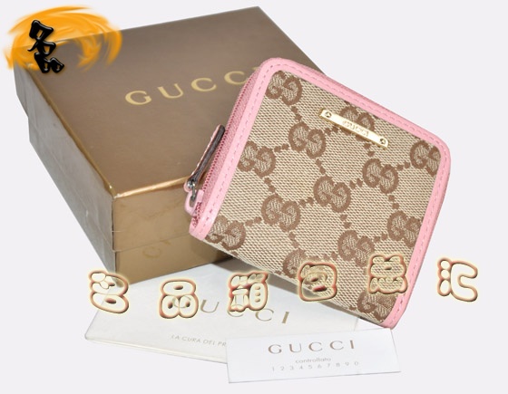 - 115255 Gucci專用雙G花布女士錢包 古奇零錢包 Gucci錢包 Gucci女包 杏配粉色