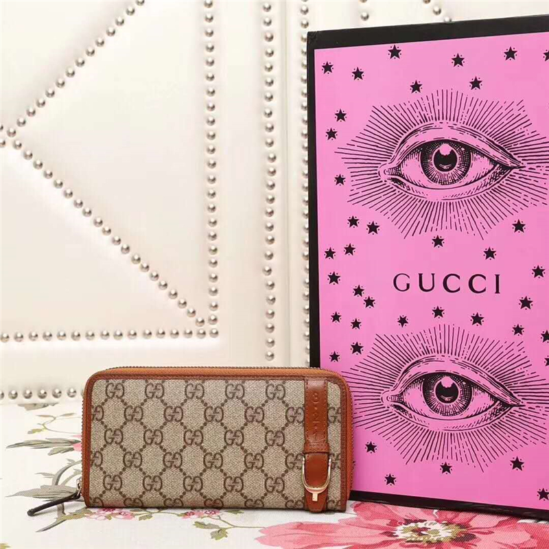 309758 GUCCI 拉鏈錢包 高級人造帆布 原板五金 原版牛皮 棕色