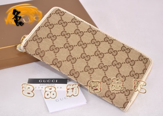 - 154591 一比一品質 Gucci經典雙G花布時尚休閑女士錢包 Gucci長款錢包 杏配米白色