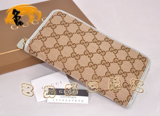 - 154591 一比一品質 Gucci經典雙G花布時尚休閑女士錢包 Gucci長款錢包 杏配淺藍色