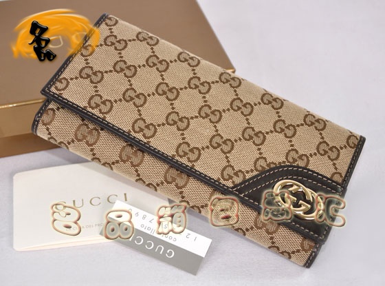 - 181593 原單一比一品質 古奇雙G花布女士錢夾 Gucci長款錢包 Gucci帆布包 杏色