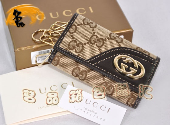 - 181599 Gucci時尚休閑女包 Gucci鑰匙包 Gucci鑰匙夾 Gucci帆布包 杏配深啡色