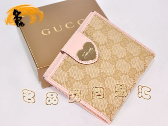 - 203549 專柜品質 新款Gucci錢包 Gucci雙G帆布 心形按扣女士錢夾 杏配粉紅色