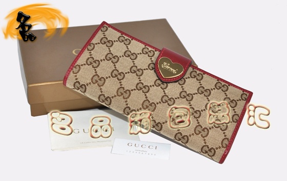 - 203550 Gucci錢包 Gucci經(jīng)典雙G帆布女士錢夾 Gucci長款錢包 一比一品質(zhì) 杏配紅色