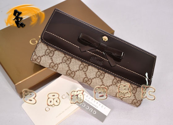 - 203559 Gucci專用雙G PVC女士錢夾 Gucci錢包 Gucci長款錢包 蝴蝶結(jié) 深啡色