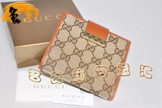 - 212093 古奇帆布錢包 Gucci最新款 Gucci女士錢包 Gucci短款錢夾 杏配橙色