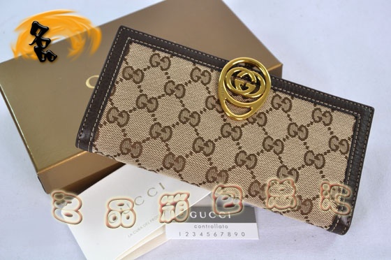 - 224225 Gucci時尚女士錢夾 Gucci長款錢包 Gucci經典雙G帆布 Gucci錢包 杏配啡色