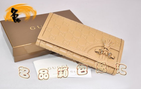 - 233056 古奇女包 GUCCI最新款流蘇 牛皮壓花錢包 GUCCI長款錢包 黃色