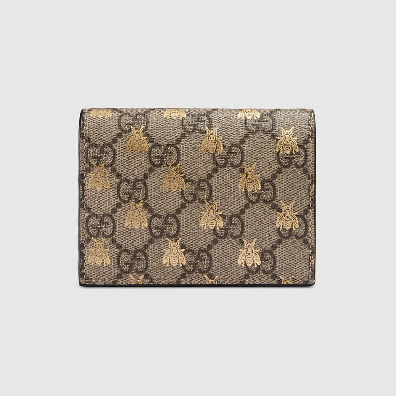 508757 Gucci 古馳錢包 蜜蜂圖案 高級(jí)人造帆布 卡片夾 淺啡色