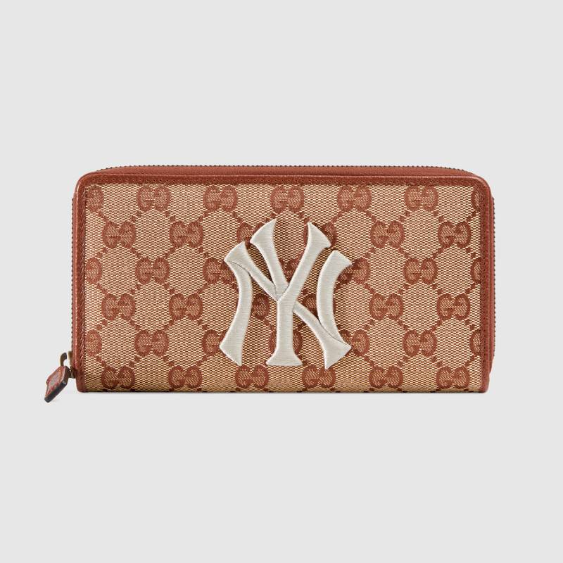 547791 GUCCI 飾New York Yankees™ 貼飾經(jīng)典 GG 全拉鏈錢包 磚紅色