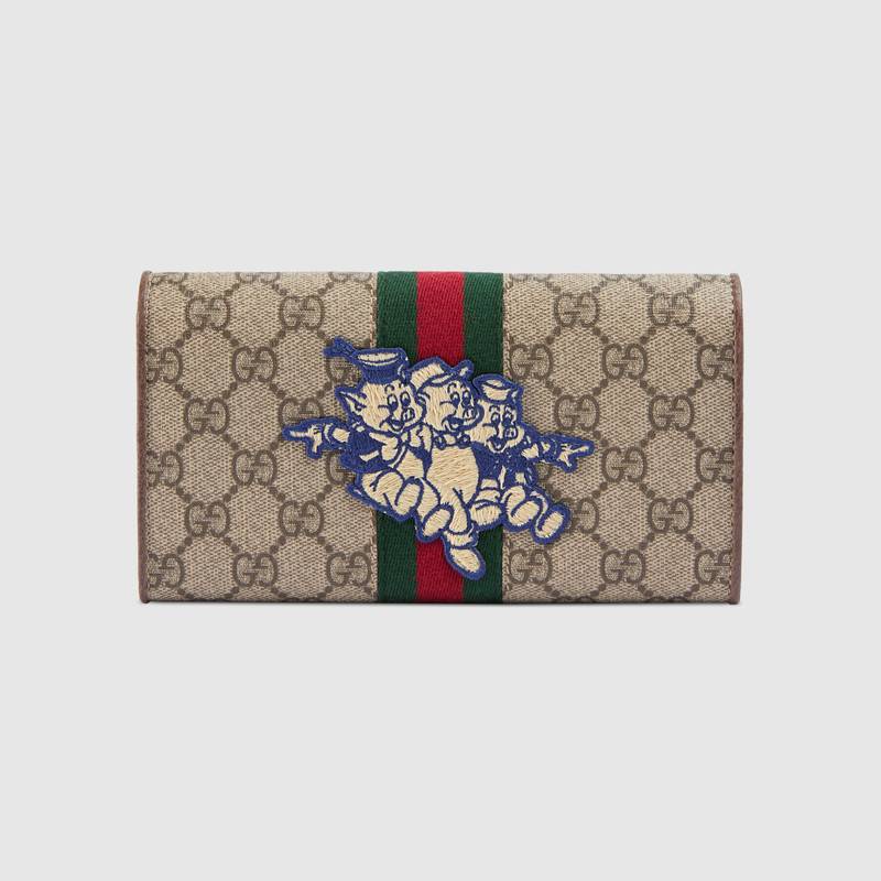 • 557803 GUCCI GG Supreme高級人造帆布 三只小豬圖案 長款錢包 烏木色