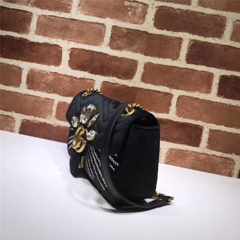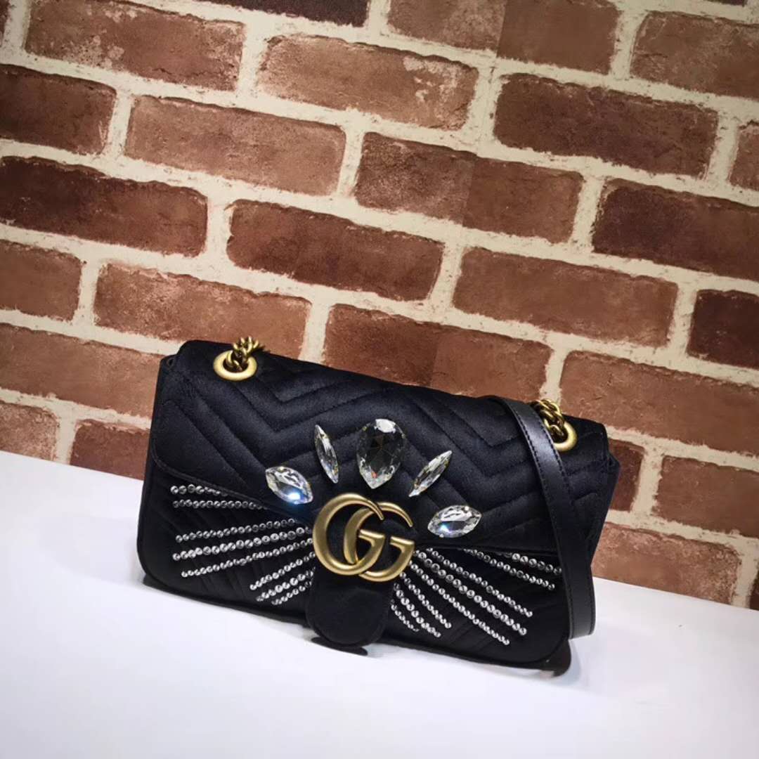 443497 最新GG Marmont系列 鉆石 雙G 鏈條肩背包 黑色