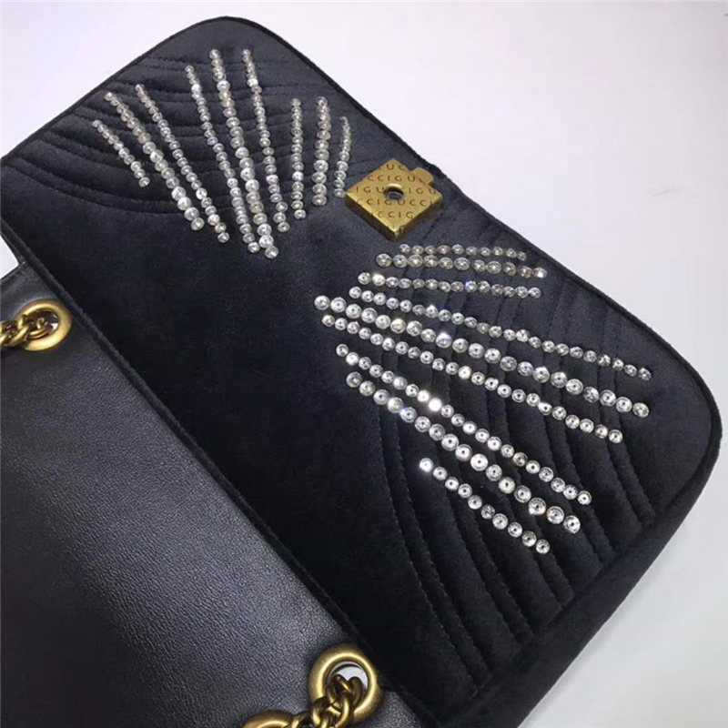 • 443497 最新GG Marmont系列 鉆石 雙G 鏈條肩背包 黑色