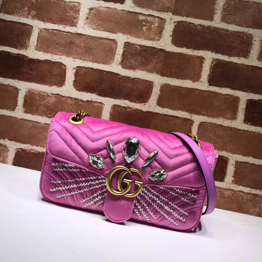 • 443497 最新GG Marmont系列 鉆石 雙G 鏈條肩背包 紅色