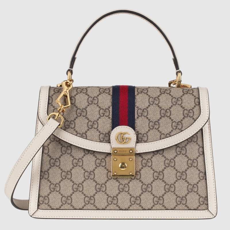 - 651055 古馳Gucci Ophidia系列小號(hào)手提包 白色皮革滾邊