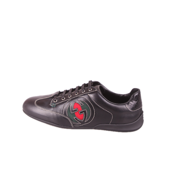 p13384 GUCCI黑色牛皮經典LOGO女士休閑鞋