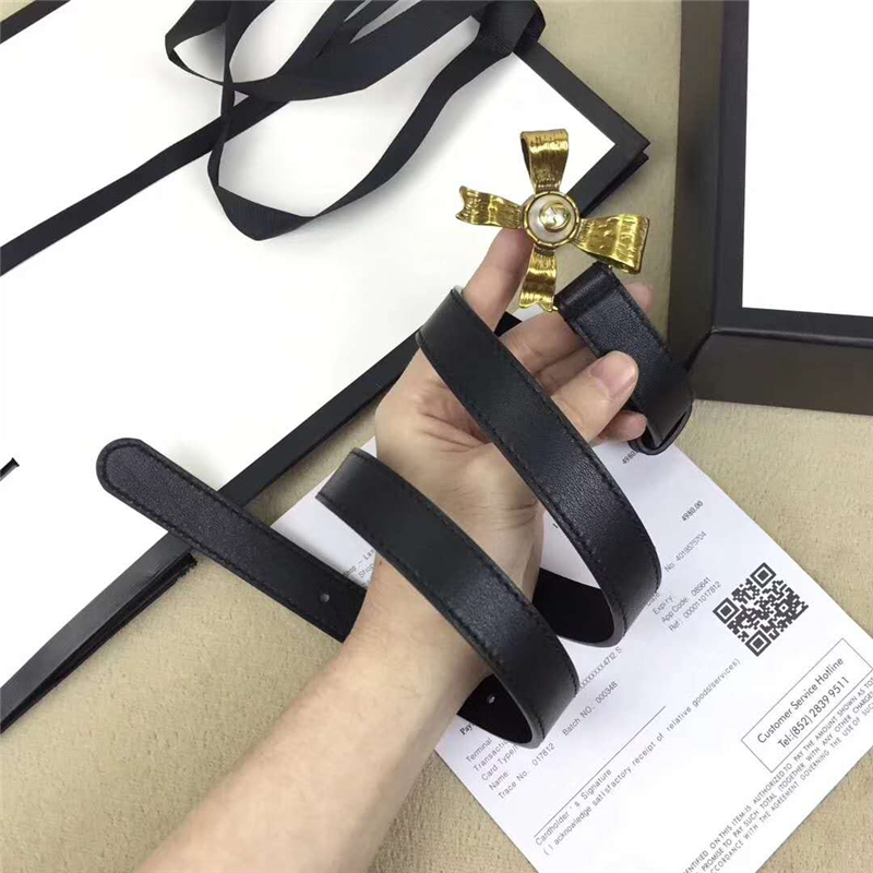 • 2008114899 Gucci 2017年新款 牛皮 金屬蝴蝶結飾釘 雙G帶扣 女式皮帶 黑色