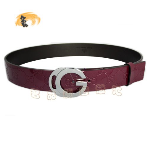 201790 Gucci皮帶 Gucci時(shí)尚牛皮雙G壓花女士皮帶 古奇皮帶 漆皮腰帶 紫紅色銀扣