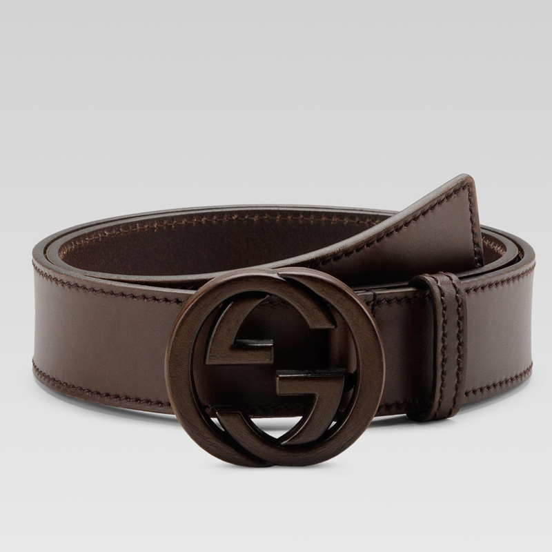 - 411924 Gucci雙G帶扣油蠟皮壓花磨砂地皮腰帶 Gucci皮帶