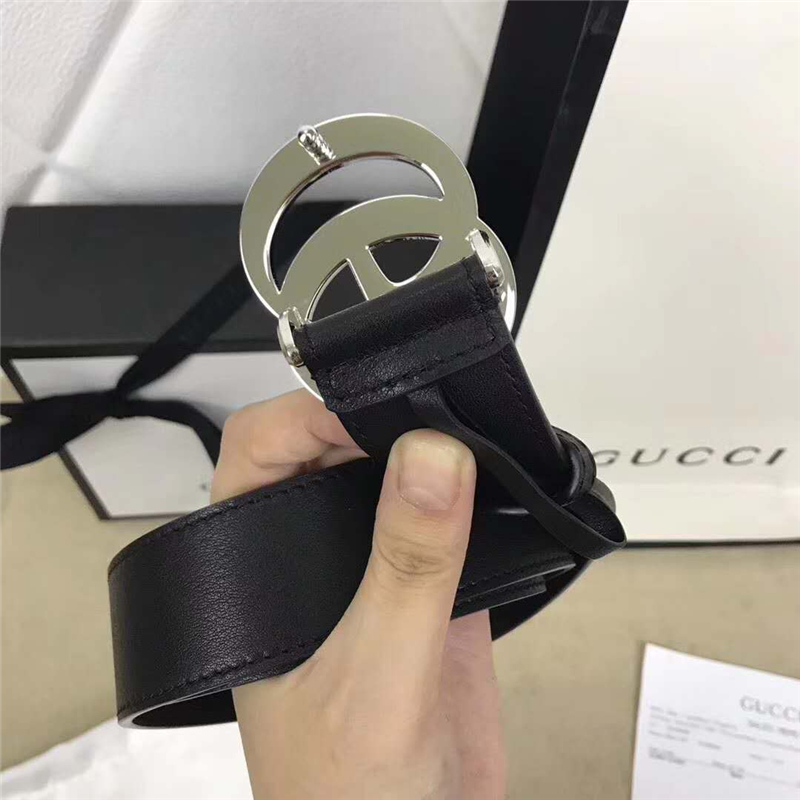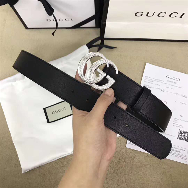 4208114879 Gucci 2017新款 牛皮 互扣式滿鉆GG帶扣 Gucci腰帶 男款皮帶 銀色