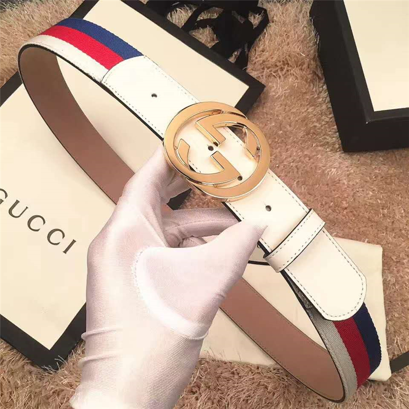 Gucci 新款 雙G帶扣 Sylvie織布真皮腰帶 情侶款 白色