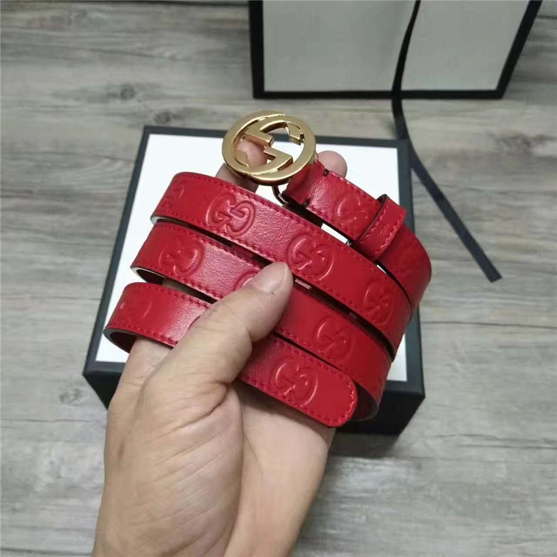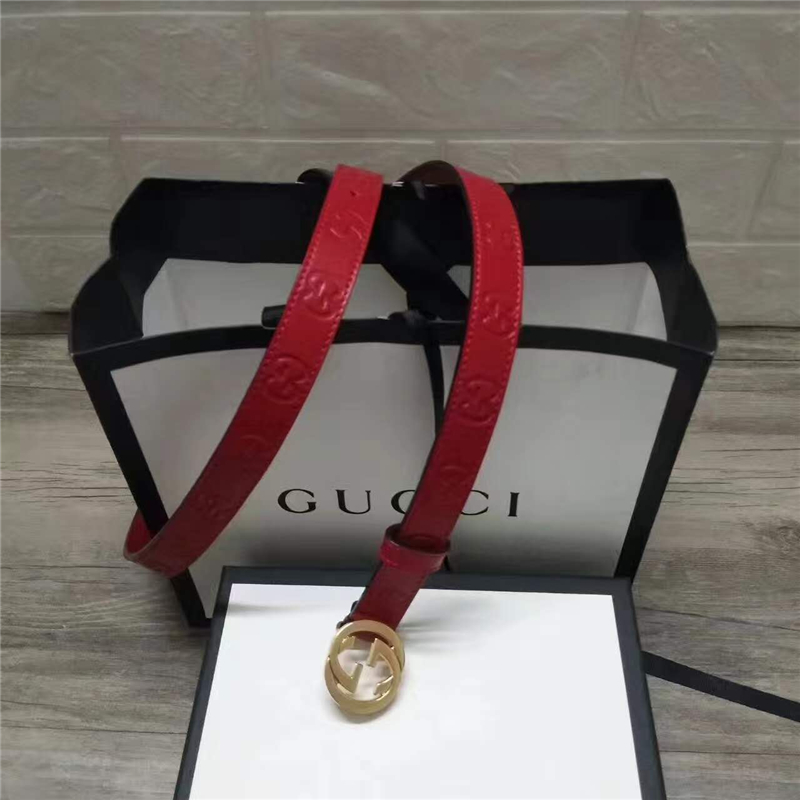 - Gucci 新款 進口原版小牛皮壓花 女士腰帶 雙G扣頭 雙面可用 粉色金扣