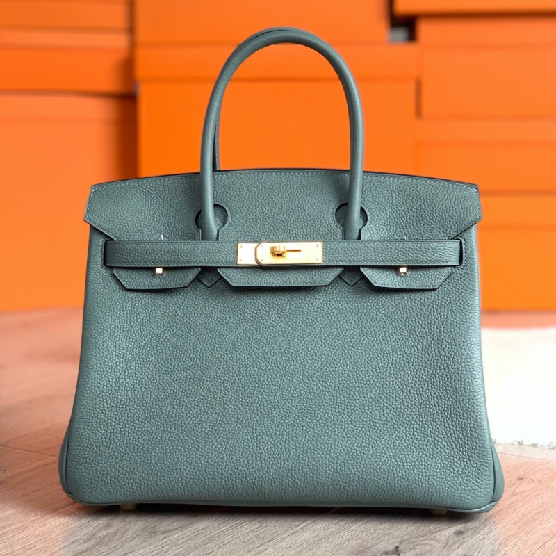 • Hermes Birkin系列 愛馬仕鉑金包 純手工定制版 30cm TOGO皮 杏仁綠