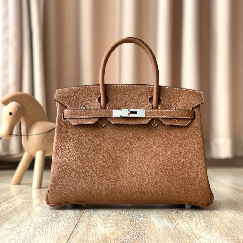 • Hermes Birkin系列 愛馬仕鉑金包 純手工定制版 30cm TOGO皮 棕色銀扣