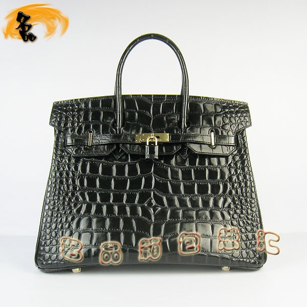 - 6089 Hermes手提包 愛馬仕女包 Hermes Birkin 鉑金包 鱷魚紋(35) 黑色金扣