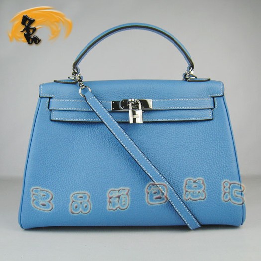 - 6108 Hermes時尚休閑女包 愛瑪仕女士KELLY 凱莉包 藍色 明星款 手提斜挎包