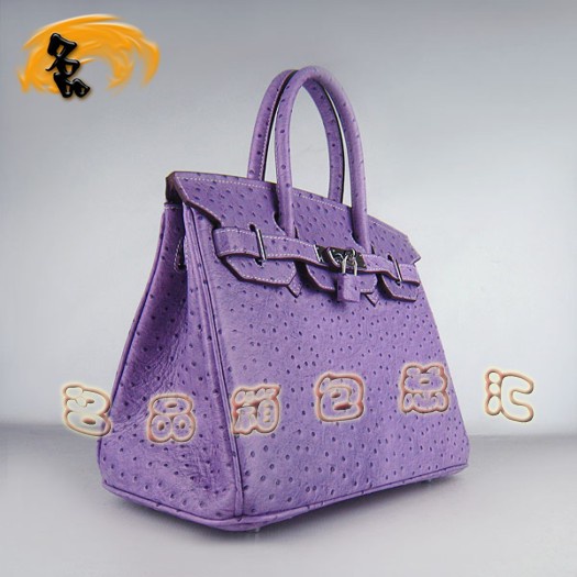 - 6088 愛馬仕女包 Hermes Birkin 鉑金包 Hermes手提包 鴕鳥紋銀扣 紫色